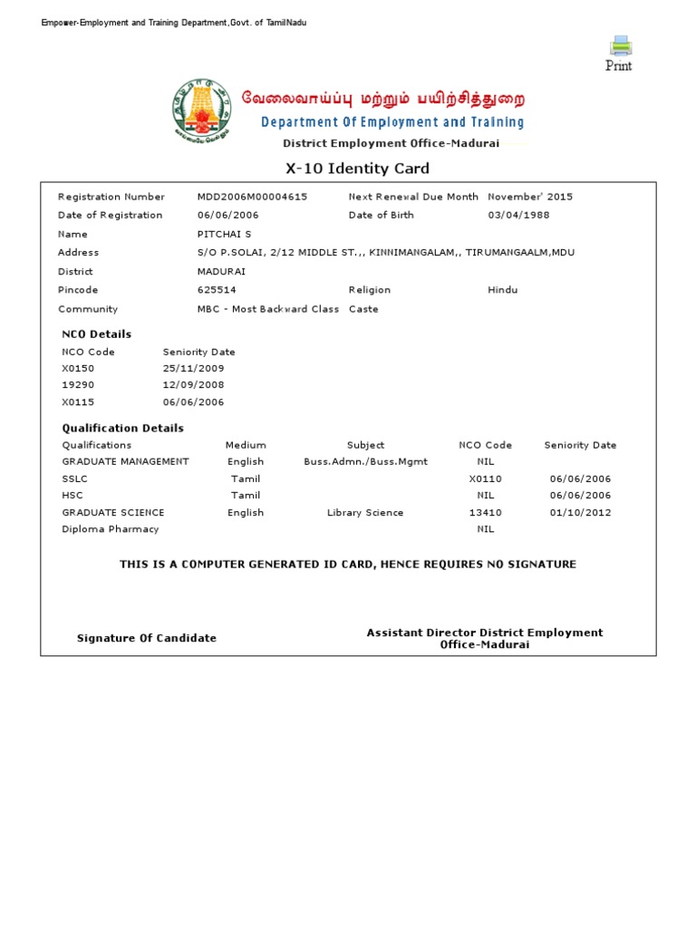 A R Murugadoss Office Address Contact Number. Information on Cut-off Seniority dates adopted for nominationin Employment Offices in Tamil Nadu. District Employment Office-Madurai NKD District Employment Office-Namakkal KRD.
